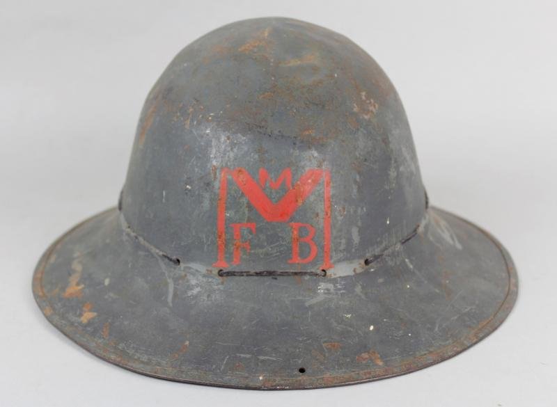 From a private British helmet collection recently purchased many of which will be offered on the collectors market for the first time in the forthcoming updates. A British Home Front Zuckerman helmet with insignia to front for Morris Motors Fire Brigade. Morris Motors were a Cowley, Oxfordshire based factory which manufactured much large military equipment such as Tiger Moths, Tanks, Scout Cars , DUKWs & gun barrels. The No.1 Metal & Produce Recovery Depot run by the Civilian Repair Organisation was also based there handlling crashed or damaged aircraft as well as enemy airplane wreckage for the war effort. Finished in the standard civilian grey paint it has the red motif painted to front & displays overall quite heavy wear. Interior has intact 1941 dated liner with 1941 date to underside of shell. Interesting piece from a very old Home Front helmet collection.