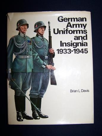 Classic 1971 edition reference work on the German Army uniforms & insiginia of WW2 by noted author Brian Davis. 224 pages of information on the many varied topics including Ranks, Head Dress, Footwear, Personal Equipmet etc are well illustrated with well chosen black & white period photographs of the gear in use further enhanced by a colour drawn section on shoulder straps & collar patches. Superb reference book in good condition small tear to dust cover front corner. Price includes UK postage.