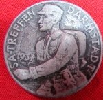 Original era manufacture. German WWII SA Treffen, Darmstadt 1937 Tinnie. Pinback and maker marked reverse. Measures 35 mm.