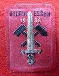 Original era manufacture. Well done cloth embroidered emblem which is glued to a red cardboard backing with a pinback reverse. measures 30x40mm.