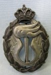 Original era manufacture. Awarded in several classes, this being the silver class. 34x50 mm zinc badge with a painted silver center insignia. Pinback reverse, unmarked. Normal age and wear.