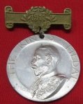 Original era issue. Named to H. Habroe, for 2 years punctual attendance. Nice quality medal, named on the reverse.