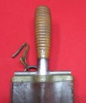Original era manufacture. Polished steel finished blade, with an turned oak grip which is U.S. marked above the ferrule. Leather covered, U.S. marked, metal bodied scabbard with a large split-ring on the reverse. Attached to the split ring is a brass haversack hook, likely installed by the soldier for ease in carrying. The blade finish is bright with original polished surface visible, showing staining from light surface corrosion; no deep pitting or damage. Intact original leather bodied scabbard with sound stitching, displaying minor surface wear and use.