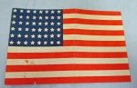 Original era publication. A professionally printed 7x5 inch paper 48 star flag. On its reverse is a type written plea which reads; 'NOTICE, IF OPENED FOR INSPECTION PLEASE LEAVE ALL CONTENTS AS WERE. ALL OF THIS WAS LEGALLY ACQUIRED SO PLEASE DON'T TAMPER JOE. Thanks, AN ETO VET. Inspected by an officer and approved.Mail theft of WWII mail home souvenirs was a real problem during WWII, my Uncle lost some from pilfering. This was one GI's ploy to appeal to the better instincts of his comrades. Light wear and use.
