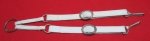 Original era manufacture. White leather hangers with nickel fittings. Clean condition, no issues.