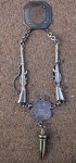 Original era manufacture. A very intricate and well made watch fob of the pre-WWI era. Measuring 8.25 inches in length, with an octagon shaped tab at the top, from which 2 stylized Gewehr 88 rifles are suspended, with the butts of the rifles providing support for a shield-shaped device, which in turn, suspends a bullet-shaped pendant. Period engraving on the octagon and shield, honoring a march competition in 1910.