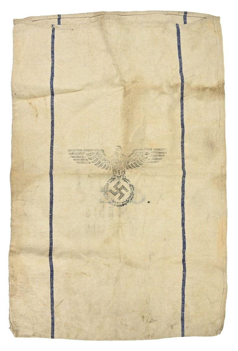 Very nice and decorative Wehrmacht food supply bag with decorative Eagle and marked “H.Vpl.” Dated “1940” used for transport bread, sausage etc. etc. for feeding the soldiers in the field In used but very good condition!