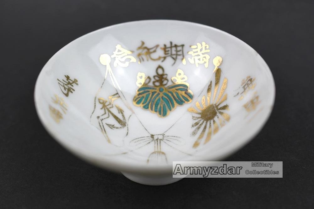 This is a good used WW2 Japanese SAKE cup with military orde of rising sun motive.