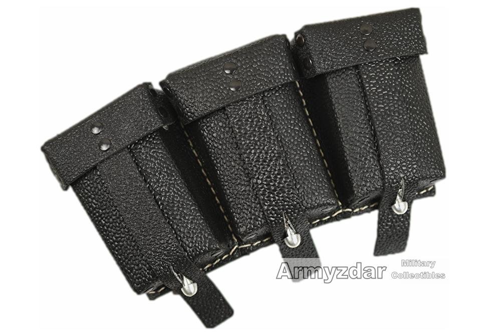 This is a good quality reproduction of the German K98 ammo pouch made from leather. This type with riveted straps was used in second half of war.Material:100% LeatherMaker:Armyzdar