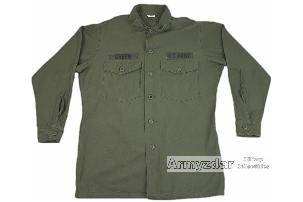 This is in a mint conditioin P64 shirt with green name and US Army patches. Manufacture year 1969.