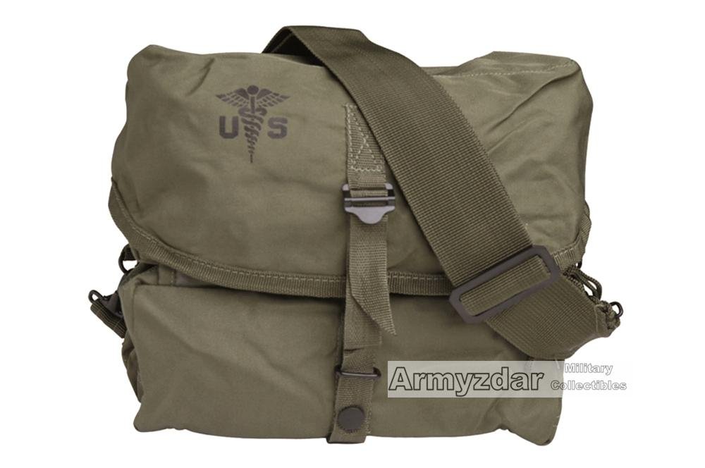 This is a nice reproduction of US Army medical bag. The bag has big main pocket with zipper, two smaller pocket with zipper and removable shoulder strap.