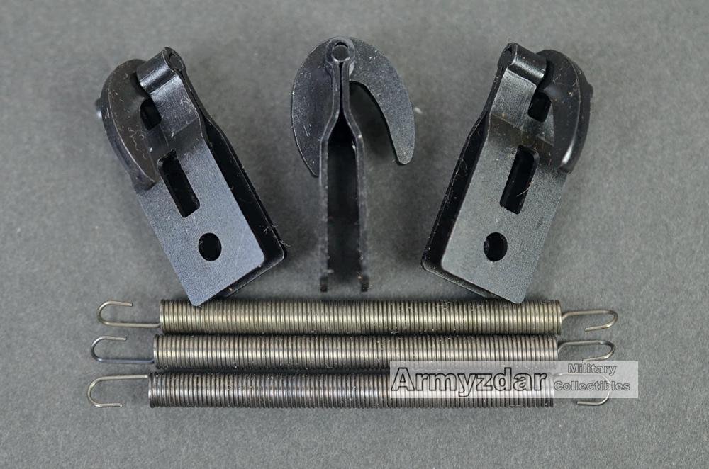 This is a high quality reproduction of the German SS helmet cover harware. The set contains 3 hooks and 3 springs.