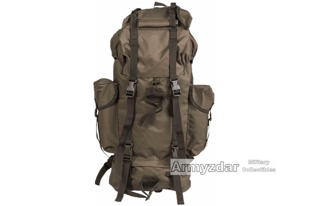 This is economy German Bundeswehr combat rucksack. Rucksack has total 7 pockets. Straps and belly are padded. The rucksack has adjustable belly strap in length with quick release fastener. Inside is rucksack fully rubberized.