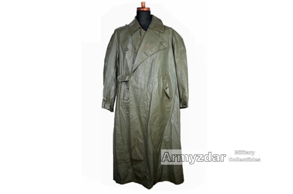 This is hard used, but still nice original WW2 German motorcycle rubburized coat. The rubberized material is still soft, on the lining missing maker's tag and on the front is RBNr number stamp. This is late war coat without collar with wool fabric.