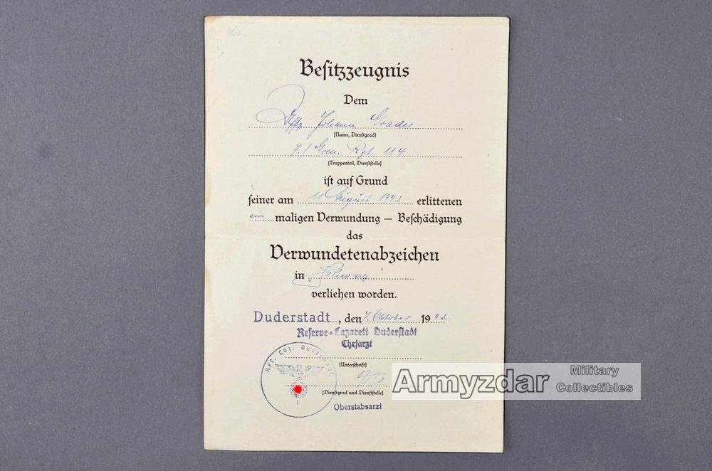 This is a very nice decree for black wound badge of 7. Grenadier Regiment member.