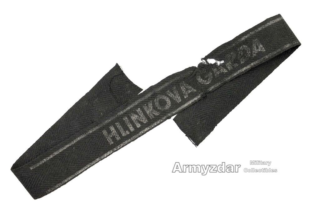 This is extremly rare German cuff title Hlinkova Garda. It is white ink stamped on black strap. Close to letters GA is damage as you can clearly see on pictures.