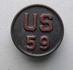 Original period manufacture. Darkened copper enlisted type 1 collar disc, screwpost reverse, US 59