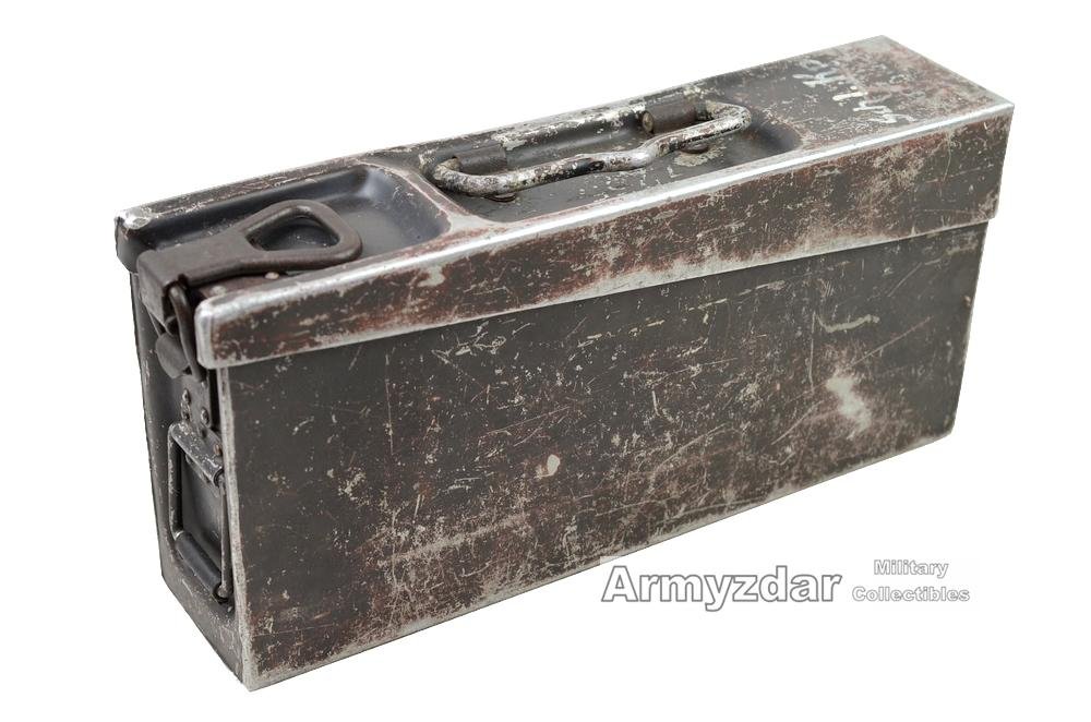 This is a very nice early aluminium MG ammo case in original grey colour. The handle is original repaired as you can see on pictures.