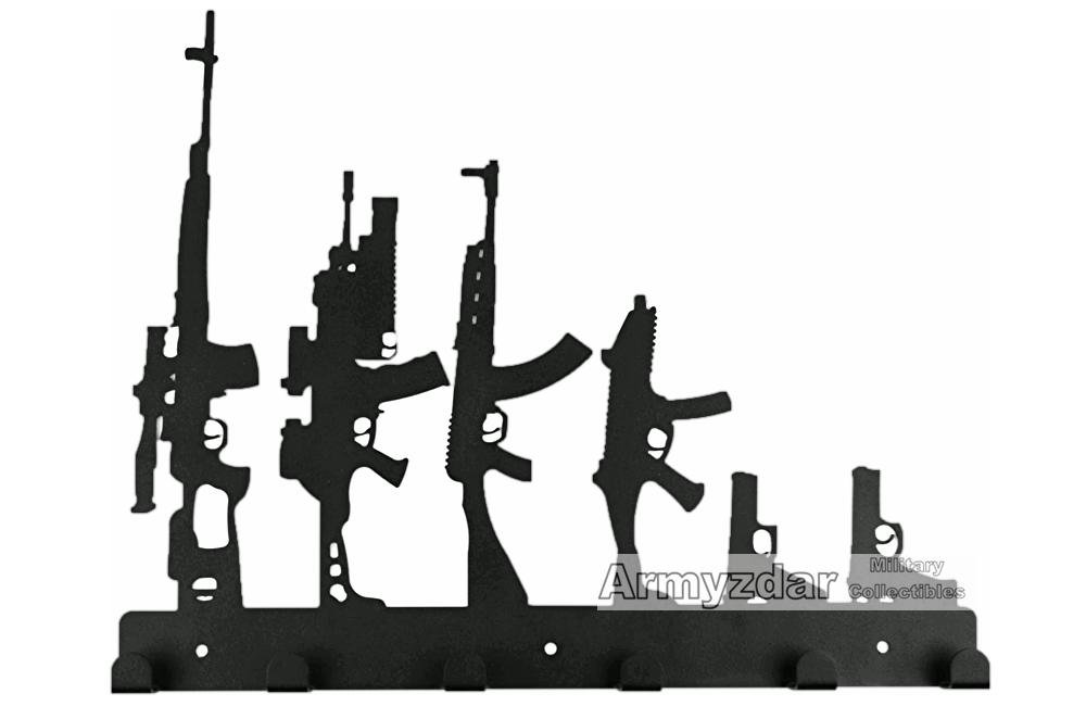 This is beautiful wall key or cloth hanger with 6 different guns. It is high quality european made hanger.