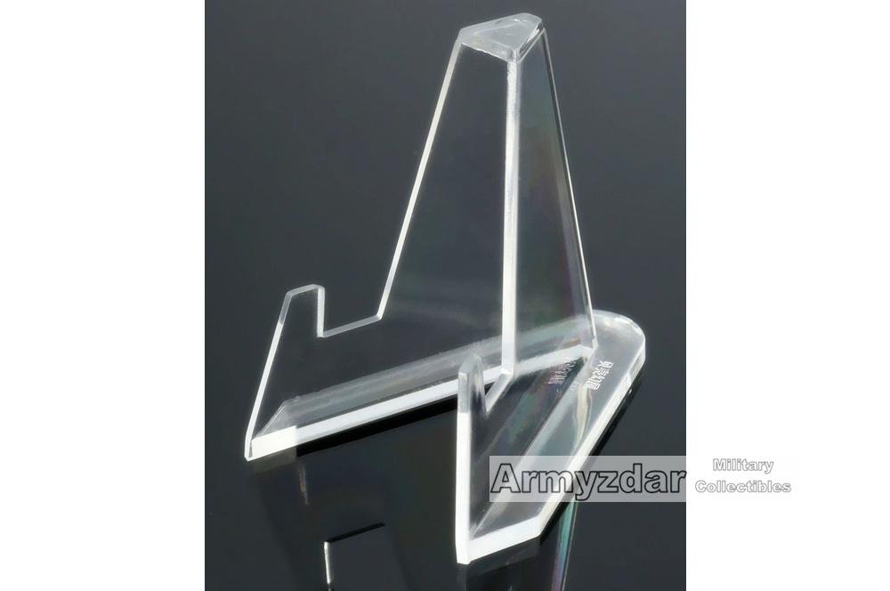 This is a perfect clear plastic stand for display your collection. The stand is a good for medals, badges, dog-tags or coins.