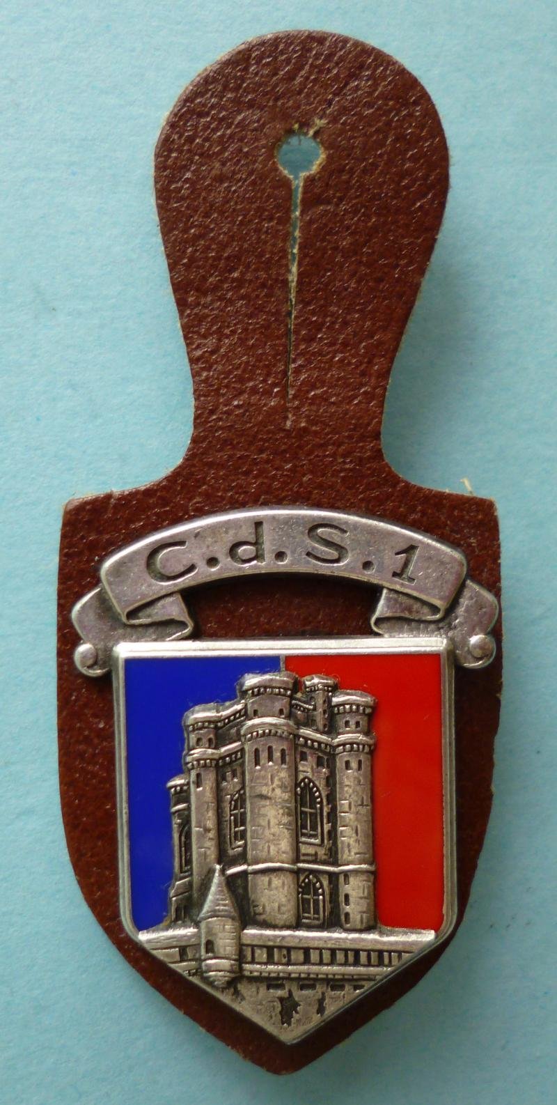 France : Military Selection Centre No 1 (Centre de Sélection No 1 (C.d.S.1) Enamelled formation badge on Leather Pocket-fob.