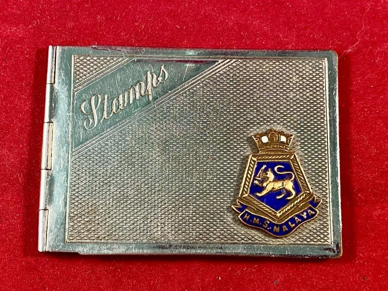 Souvenir Chrome Plated H.M.S. MALAYA Stamp Book Cover c1930