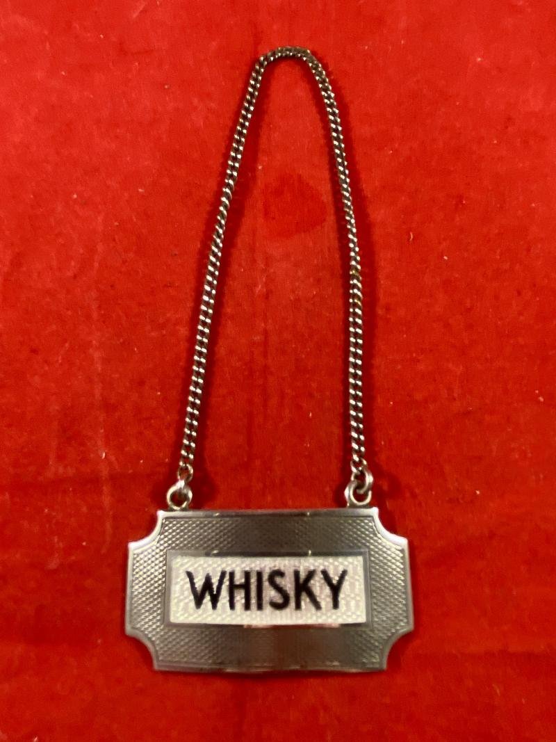 Rare Hallmarked Silver and Guilloché Whisky Decanter Label by Turner & Simpson - 1960