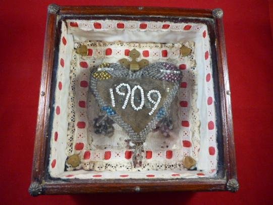 Framed Edwardian Period Heart-Shaped Sweetheart Pincushion β β1909β