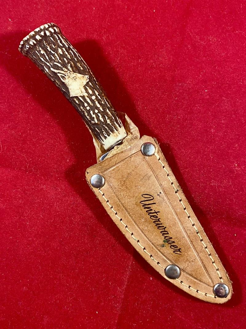 Mint Small German made Hunting Knife with Leather Sheath β Souvenir of Unterwasser Switzerland c1960