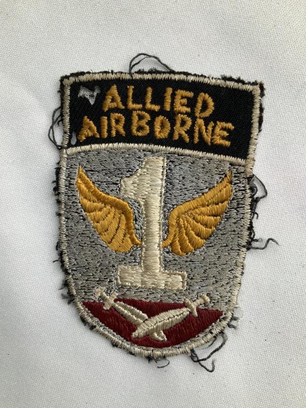 Scarce variation of the 1st Allied Airborne patch. English made in silk threads. Two small holes to the top left side of the patch see images.