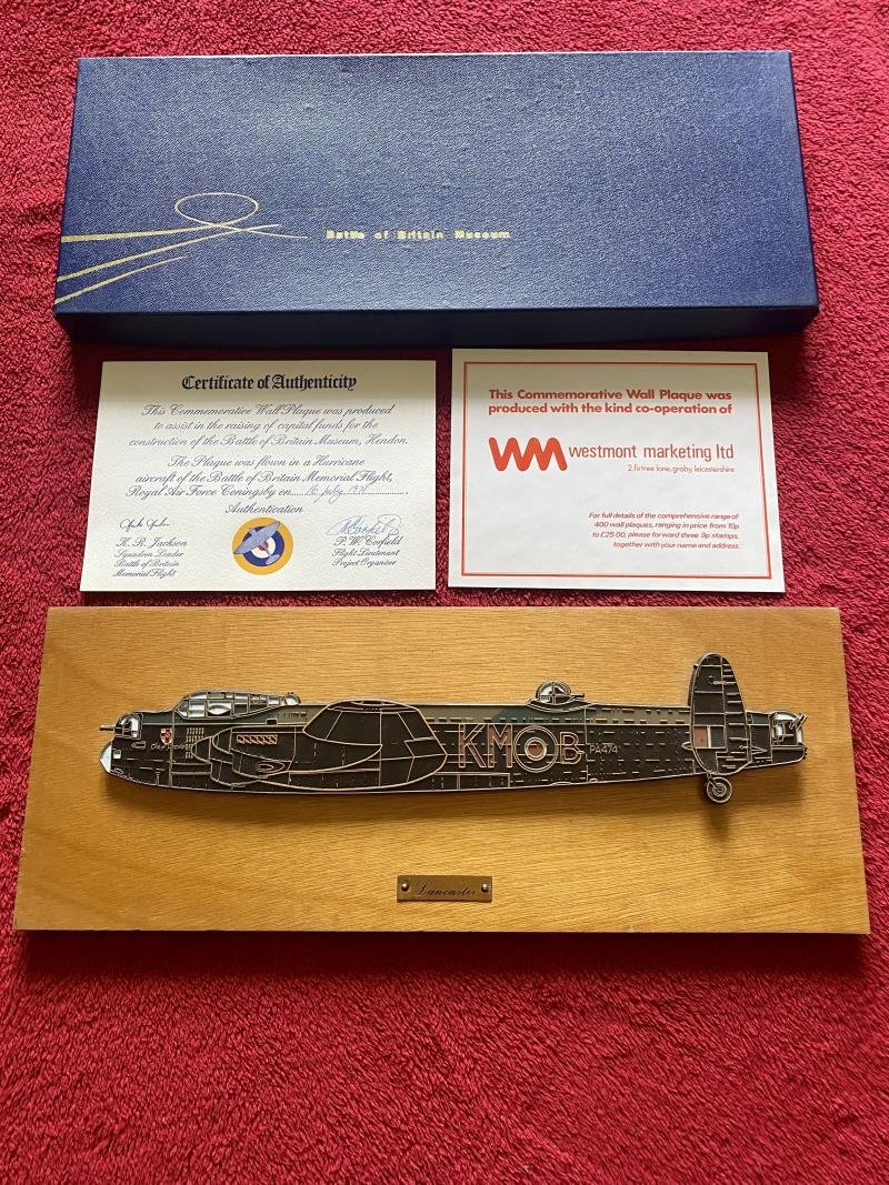 Limited Edition Battle of Britain Museum - Lancaster β Commemorative Wall Plaque with Certificate and Box c1978