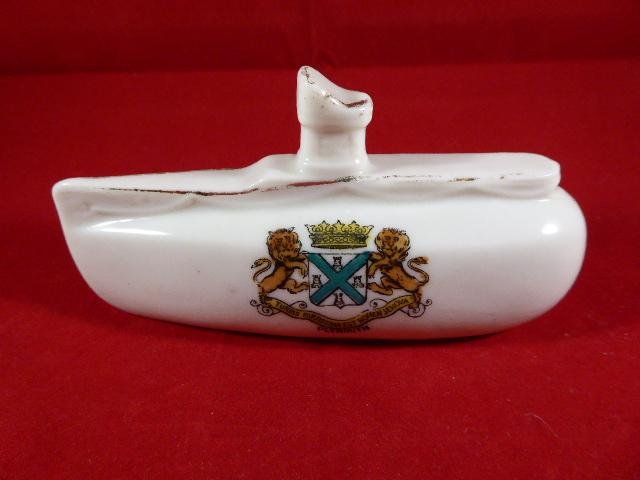 WW1 (Plymouth) Crested China Model of a British E Class Submarine made by Devonia Art China