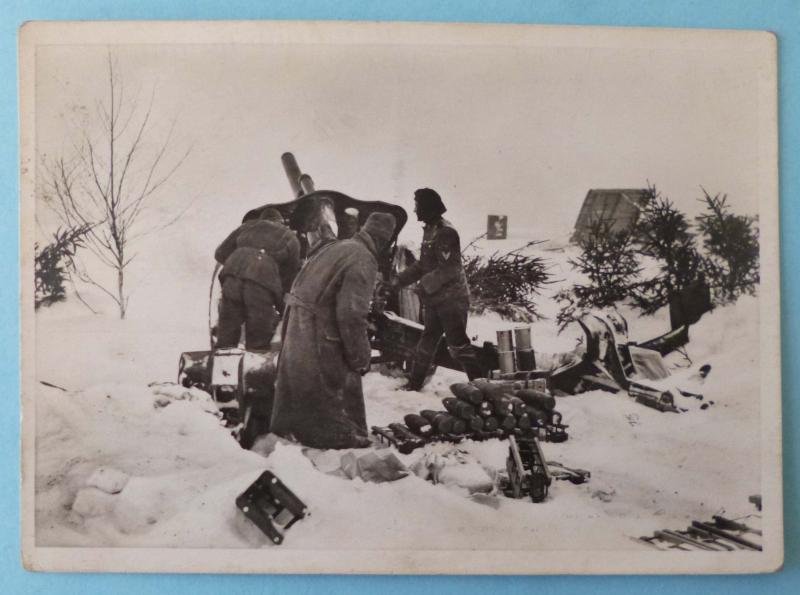 Original postcard from the 'Unsere Waffen-SS' series featuring excellent photos taken by various SS-Kriegsberichter. This one is entitled on the reverse 'Artillerie im Osten ' (Artillery in the East) and shows an artillery gun-crew in action on the Eastern Front. Very good condition with only light handling wear.