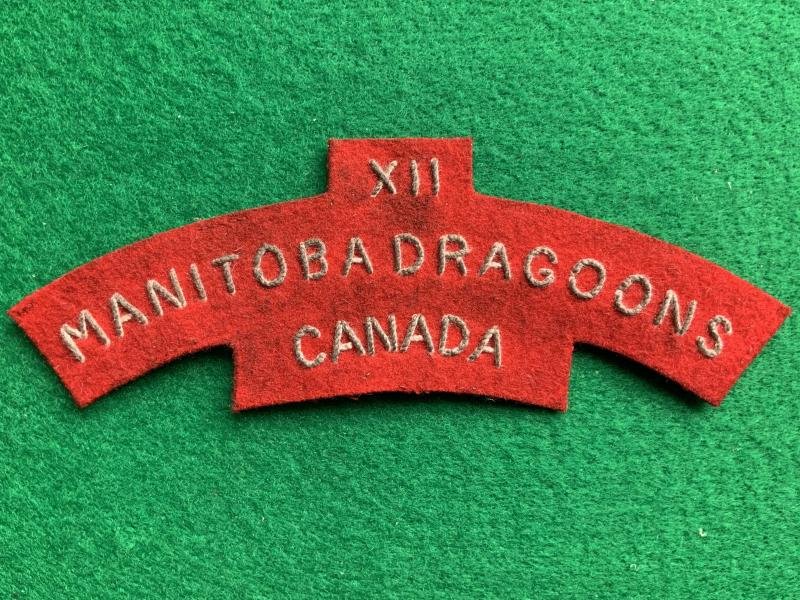 XII Manitoba Dragoons Canada shoulder title. 18th Armoured Car Regiment. Landed Normandy 9th July 1944 saw action at Falaise and North West Europe.