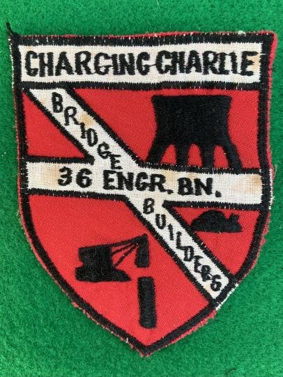 Here is a Vietnam in country made patch for the 36th Engineer Battalion Construction Bridge Builders and in good condition. 36th Engr Bn (Const) at Vinh Long Airfield, Mekong Delta, South Vietnam, Jan 1971 to Dec 1971. The 36th was under the 34th Engr Group and the 20th Engr Brigade later under Engr Command - Vietnam.