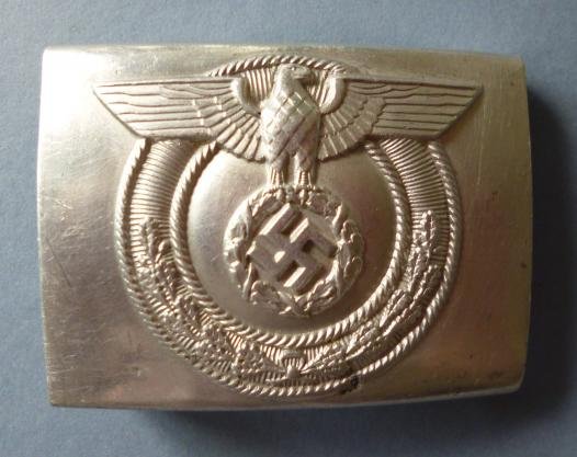 Cast aluminium buckle introduced in 1943 for the SA-Wehrmannschaften or Home-guard. The reverse is stamped 'RZM M 4/ 22' indicating manufacture by the only producer of these buckles, C.T.Dicke of Lüdenscheid. A scarce buckle in excellent condition.