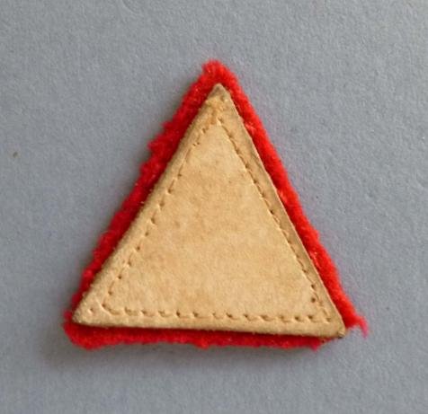 Small original white leather triangle stitched to a red wool triangular backing, 35mm overall height. Has been worn but is in very good condition.