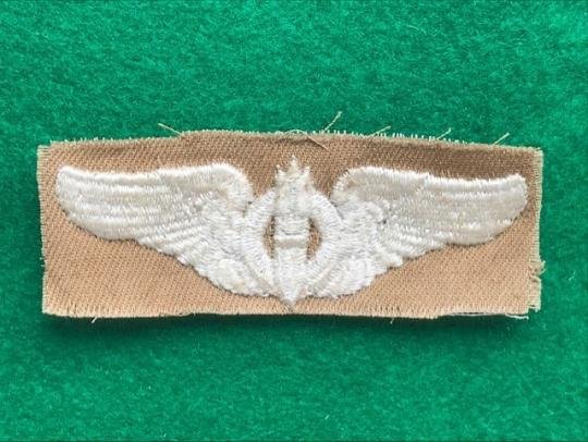 USAAF Bombardier wing in summer issue tan cloth. Measures 3 1/8' x 1 1/8'