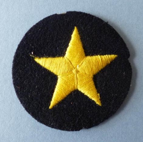 Machine-embroidered five-pointed star in yellow-gold on navy-blue. Very good condition apart from a couple of tiny moth nibbles on the edge..
