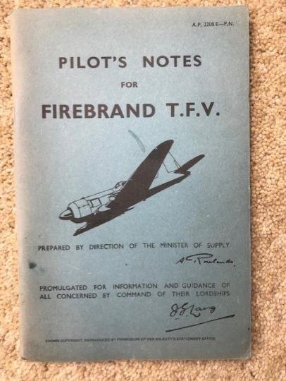 Original printed Firebrand TFV Pilot's notes. Dated December 1950, 40 pages + diagrams. and in mint condition.