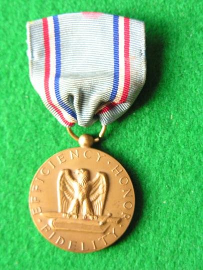 This is the US Air Force Good Conduct Medal full size. Missing fixing pin but I will find and fit one. The Air Force Good Conduct Medal (AGCM) is given to any enlisted U.S. Air Force personnel who carry out three consecutive years of 'honorable and faithful service.' Such service insinuates that a standard enlistment was achieved without any non-judicial punishments, disciplinary infractions, or court martial offenses.