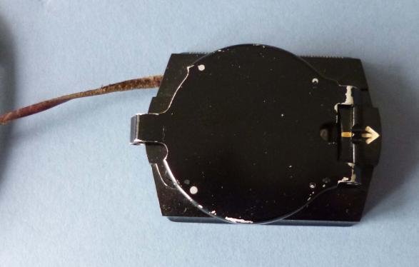 Black bakelite-bodied compass with sight and reading-mirror cover complete with leather lanyard, Working order and in excellent condition. Manufacturer's code and mould-number '2' appear on the casing underside. This style of compass is shown in the book 'Deutsche Soldaten' by Agustin Sáiz on page 182.