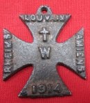 Original era manufacture. Cast Iron Cross with a suspension loop at the top. Louvain with locations listed on each arm. Measures 43 mm x 50 mm.