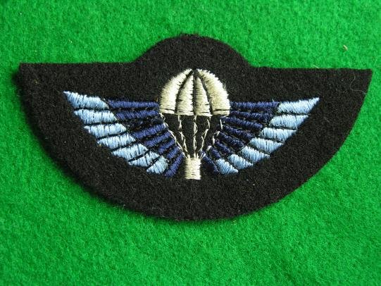 An Aussie SAS wing, embroidered on a black back ground Mint un-issued example from the 1980's. Measures 3 1/2'
