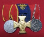 Original era manufacture. German WWII 3 place medal bar, parade mount, pinback with manufacture label. Baden Long Service, Police Long Service and Austrian Annexation medals.