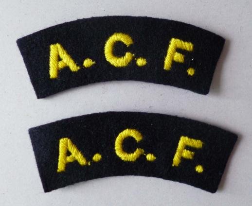 Pair of Army Cadet Force 'A.C.F.' machine-embroidered shoulder titles.