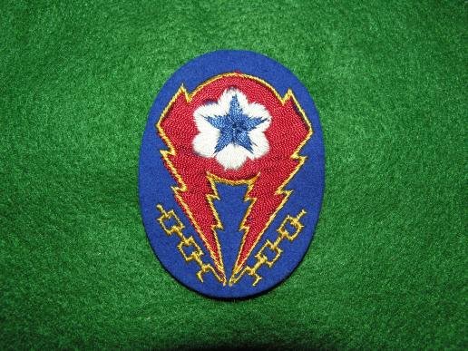 Here is an English made example of the ETO patch. Fully embroidered on wool. It is mint and one of the very best I have had the workmanship is excellent. The European Theater of Operations, United States Army (ETOUSA) was a United States Army formation which directed US Army operations in parts of Europe from 1942 to 1945. It referred to Army Ground Forces, United States Army Air Forces, and Army Service Forces operations north of Italy and the Mediterranean coast, in the European Theater of World War II. It was bordered to the south by the North African Theater of Operations, US Army (NATOUSA), which later became the Mediterranean Theater of Operations (MTOUSA).