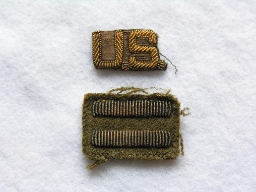 Two items both in bullion thread, U.S.lapel letters and two overseas bars indicating one year service.