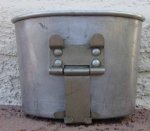 Original era manufacture. A very early M1910 canteen cup, aluminum cup with a curved top edge, quite noticeable when placed side-by-side with a standard model cup. The cup is a scarce item; when viewed in profile, the upper edge has a decided upwards curve to the lip, unlike the later, straight edge cups.No maker markings or dates as usually the case with these early patterns.