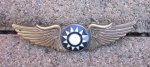 Original period manufacture. Gilded alloy wings measuring 2.75 inches in length. Blue/white enameled disc on the front, pinback reverse, serial numbered 0111.